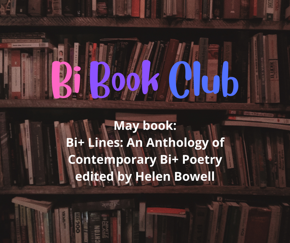 We'll reflecton on Bi+ Lines: An Anthology of Contemporary Bi+ Poetry edited by Helen Bowell at our May meeting. Come along to Talky Space in April or May, and we'll see you at the book group in a few weeks' time.